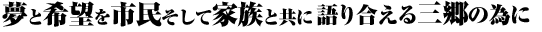 今日までの実績と7期28年の経験を更に研鑽し皆様のご期待に応えるべく、明日の健康と明るい住み良い三郷市を創る為市民の皆様の付託に応えるべきこれからも全力で市政に取り組んでまいります。